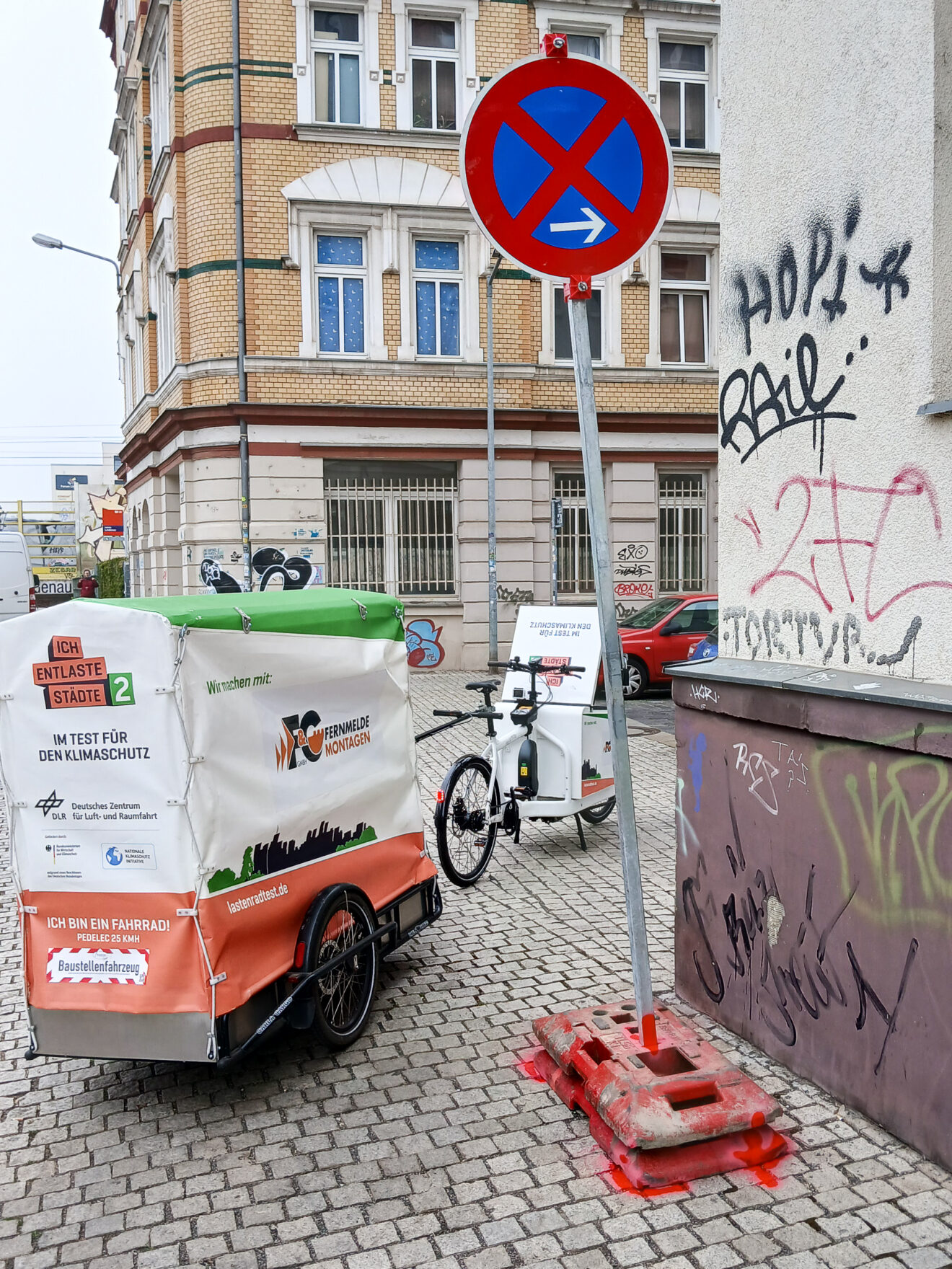 Im Langzeittest setzte F&G Fernmeldemontagen aus Leipzig erfolgreich ein Gespann aus einem Long-John-Lastenrad eBullit L und einem Carla-Cargo-Anhänger für das Aufstellen von Baustellenschildern ein – und kaufte das Testfahrzeug im Anschluss.