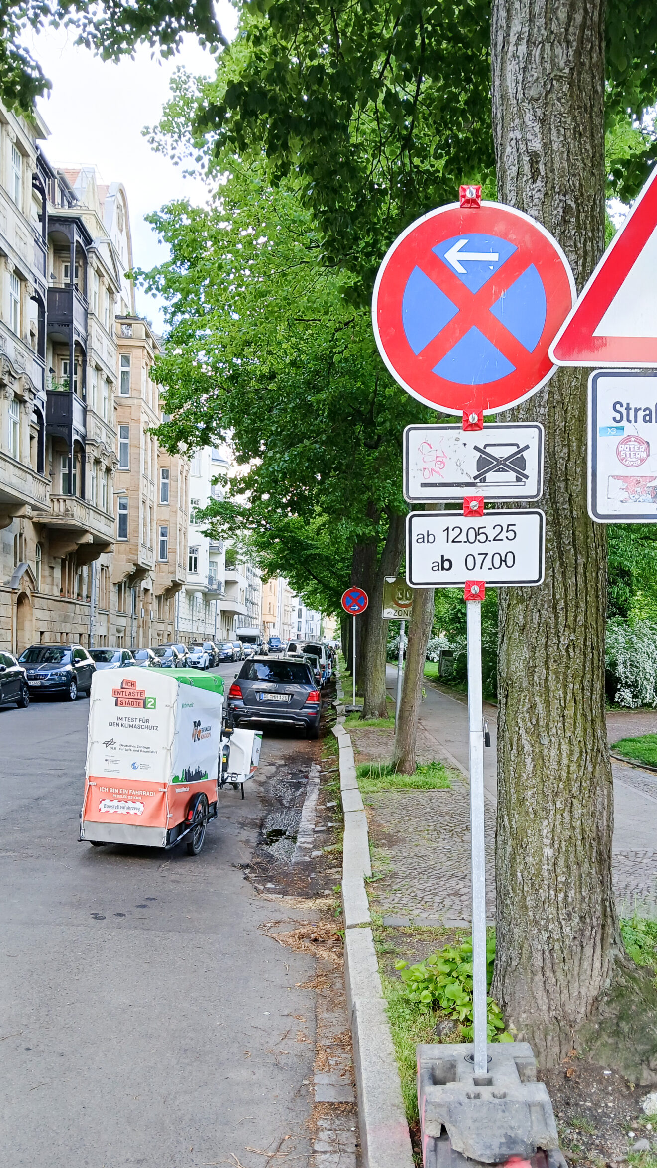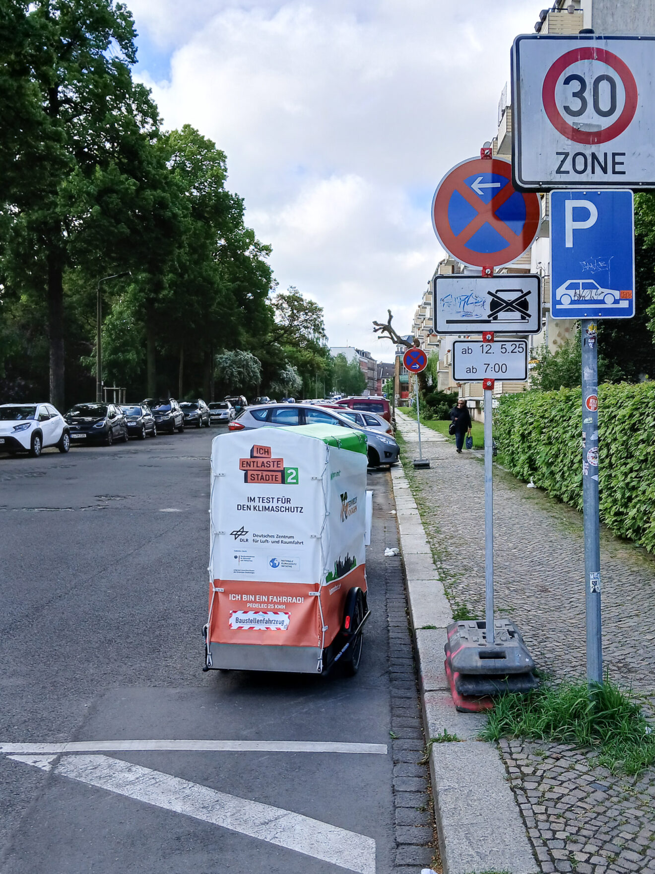 Bisher stellten Tiefbau-Fachkräfte nebenbei die Schilder auf – und das stets an einer zweiten Baustelle, da die Beschilderung 3 Tage vor Baubeginn aufgestellt werden muss. Das bedeutete Umwege zwischen Baustellenbesuchen und damit verlorene Arbeitszeit. Mit dem Lastenrad-Gespann übernimmt ein Minijobber gezielt diese Aufgabe. Dadurch haben die Fachkräfte mehr Zeit für ihre eigentlichen Aufgaben.