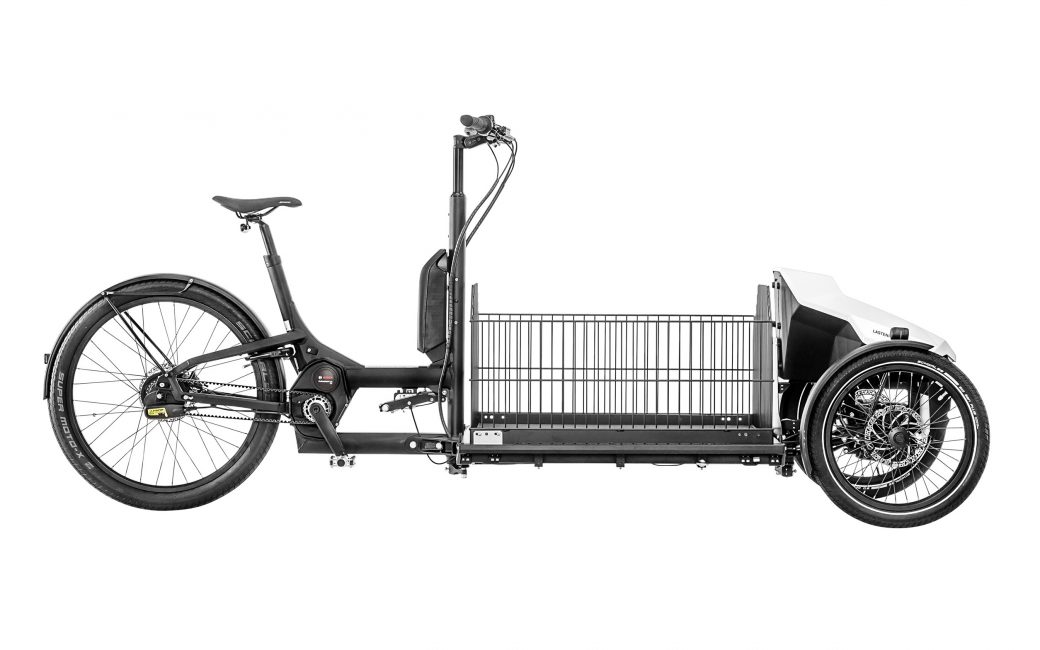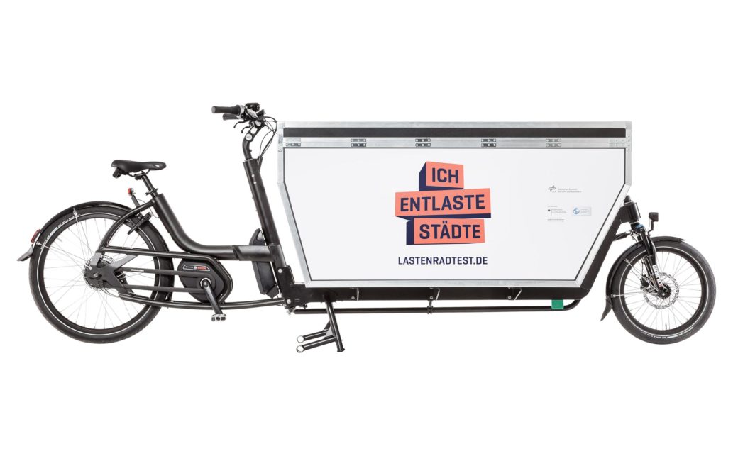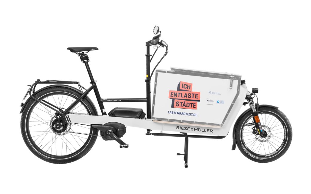 Einziges Speed-Pedelec im Testpool. Mit Tretunterstützung bis 45 kmh. Auch für längere Transporte im ländlichen Raum. Schlanke 135 Liter Box. Federgabel vorne.