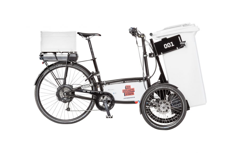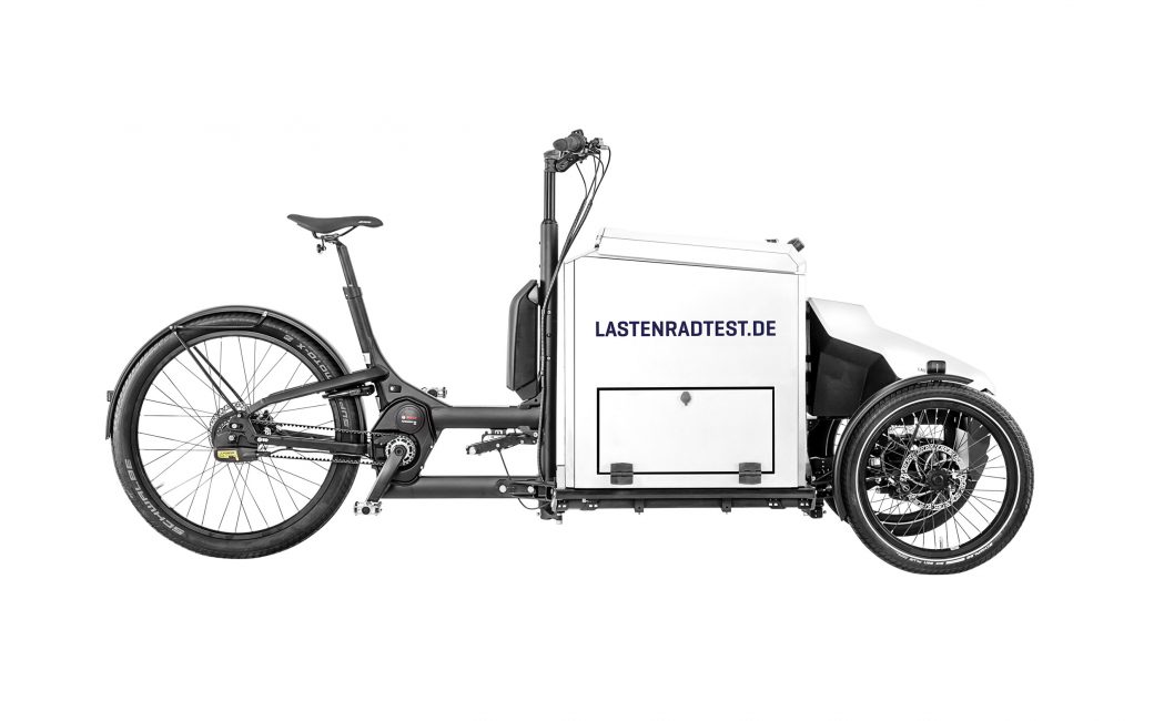 Dreirädriges (mehrspuriges) Lastenrad mit tiefer Ladefläche vorne.