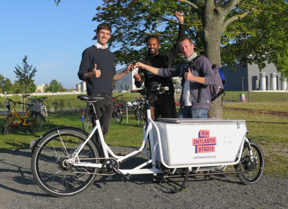 Die Stadt Würzburg lud am 21. September 2017 zur Informationsveranstaltung „Gewerbliche Nutzung von E-Lastenrädern“. Das Projekt "Ich entlaste Städte" war dabei und übergab ein Testrad.