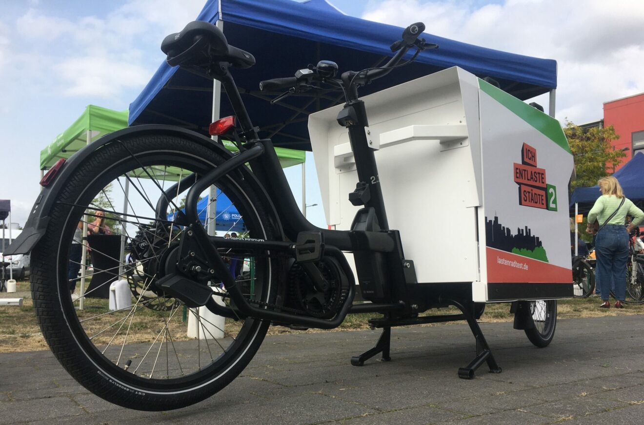 Auf dem Freigelände konnte das mitgebrachte Lastenrad auf einem abgesperrten Parcours probegefahren werden, ein Urban Arrow Cargo mit Sliderbox. Eine positive Erkenntnis war, dass die Interessenten nach einer schnellen Einführung und kurzer Eingewöhnungszeit das Fahren mit diesem großen Lastenrad sicher beherrschten. Positiv hervorgehoben wurden die Federung des Vorderrads sowie die stufenlose Enviolo-Schaltung.