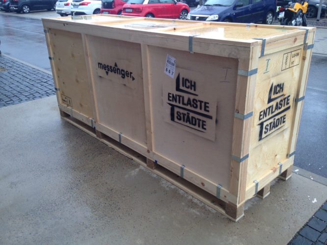 Zuständig für den Projektfuhrpark und die Zustellung der Lastenräder zu den Testern ist das Berliner Kurierunternehmen messenger. Auf längere Reisen zum nächsten Tester gehen die meisten Lastenräder in projekteigenen palletierten Holzboxen. Das ermöglicht einen sicheren und unkomplizierten Transport als Stückgut durch Logistikunternehmen. Die Holzboxen sind über die gesamte Projektdauer wiederverwertbar.