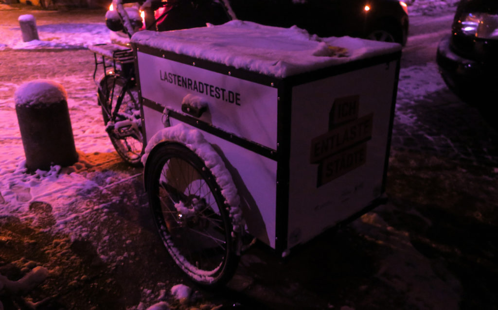Schnee wird auf dem Lastenrad zum Vorteil